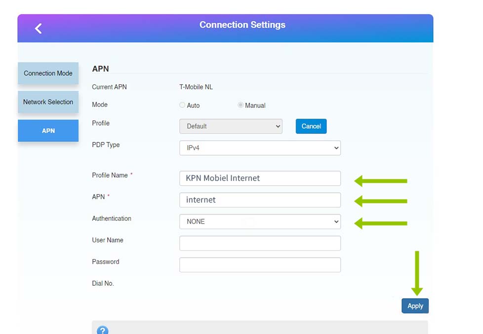 - Klik in de linkerbalk op "APN"