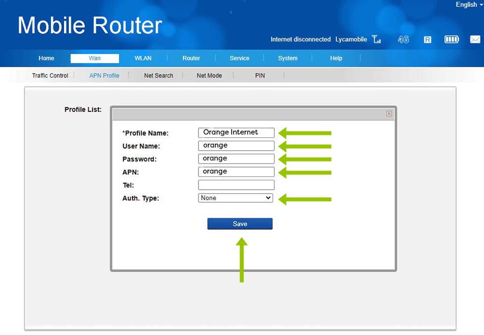 - Klik vervolgens in de balk eronder op "APN Profile"
