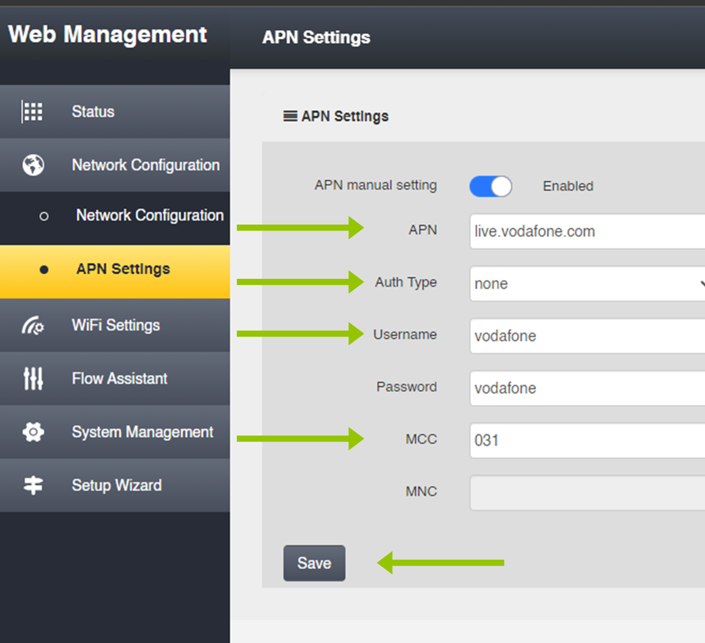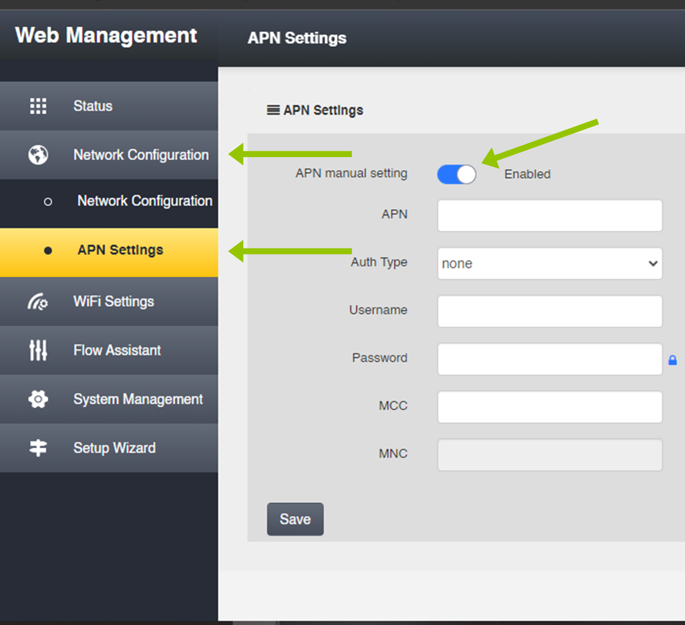 - Klik vervolgens in de balk eronder op "APN Settings"